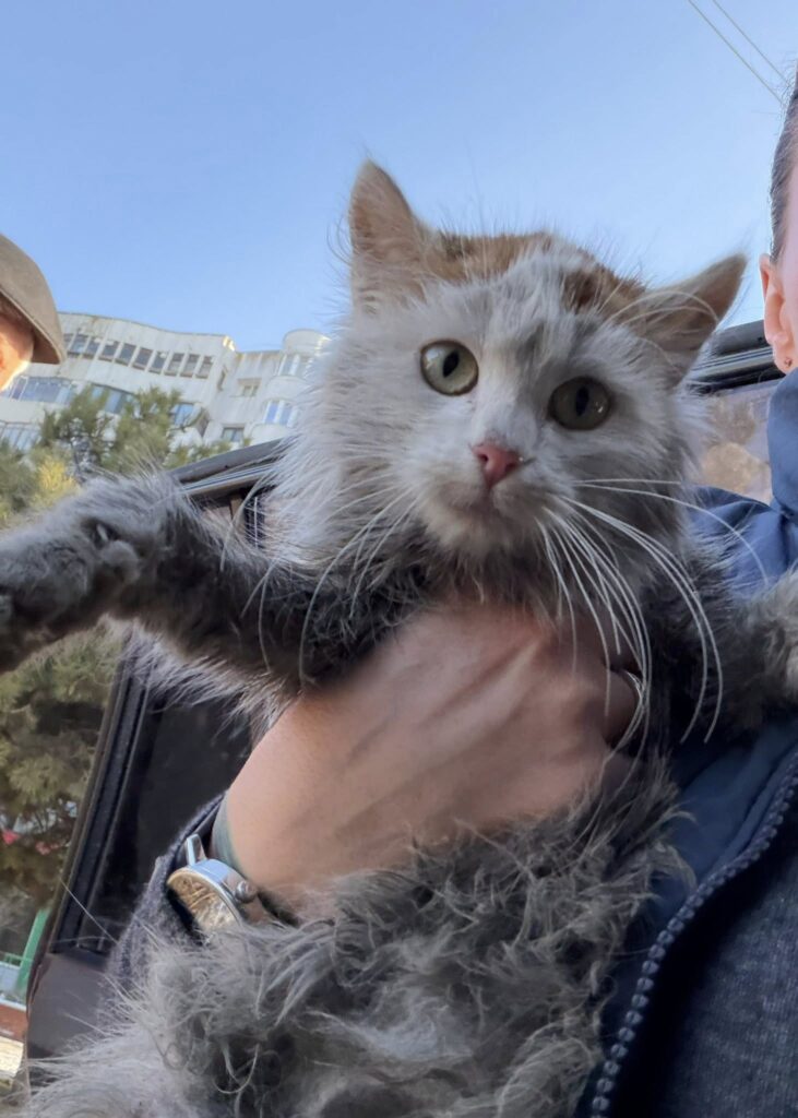Am tras pe dreapta, am păcălit-o cu o conservă și am luat-o în brațe. Iar când a dat de o haină, de căldură și de siguranță, a leșinat de fericire și recunoștință.
