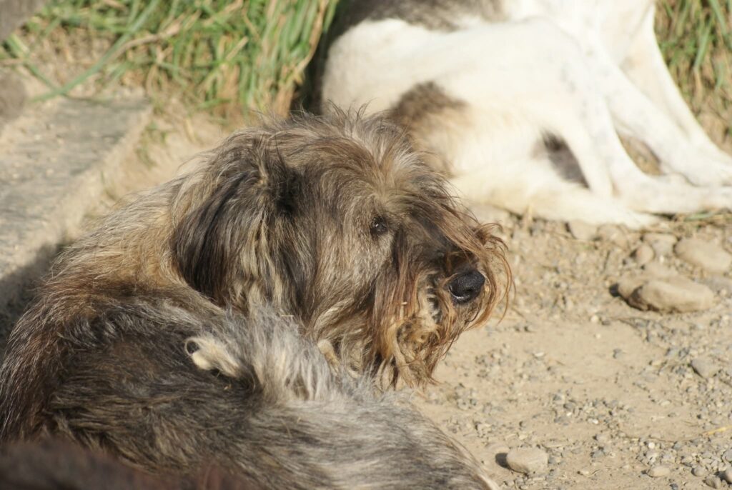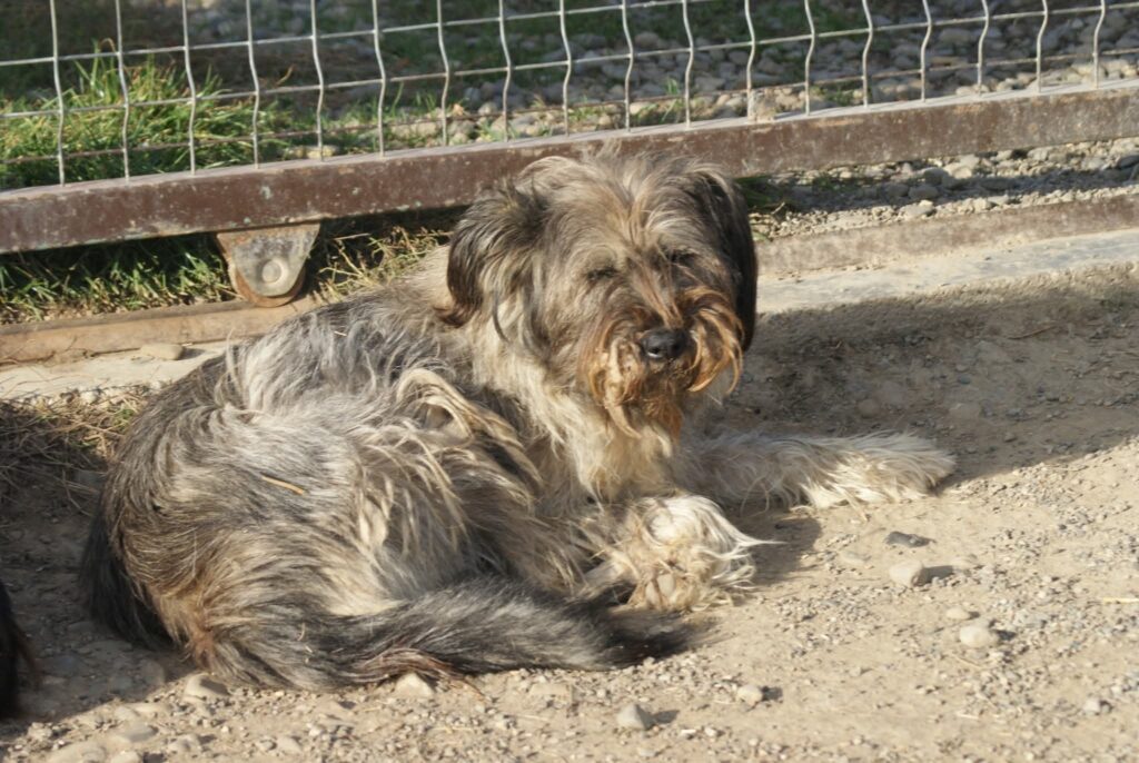 Este bătrână cățelușa. Născută prin 2014. Nu face parte dintre câinii care cuceresc oamenii ușor. Nu sare în brațe, nu caută mâini străine, nu visează la o viață diferită de cea pe care o are acum. Cu alți câini se înțelege bine. Față de oameni păstrează distanța. Nu din răutate, ci dintr-o prudență pe care o manifestă instinctiv.