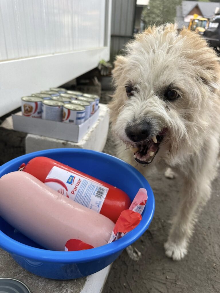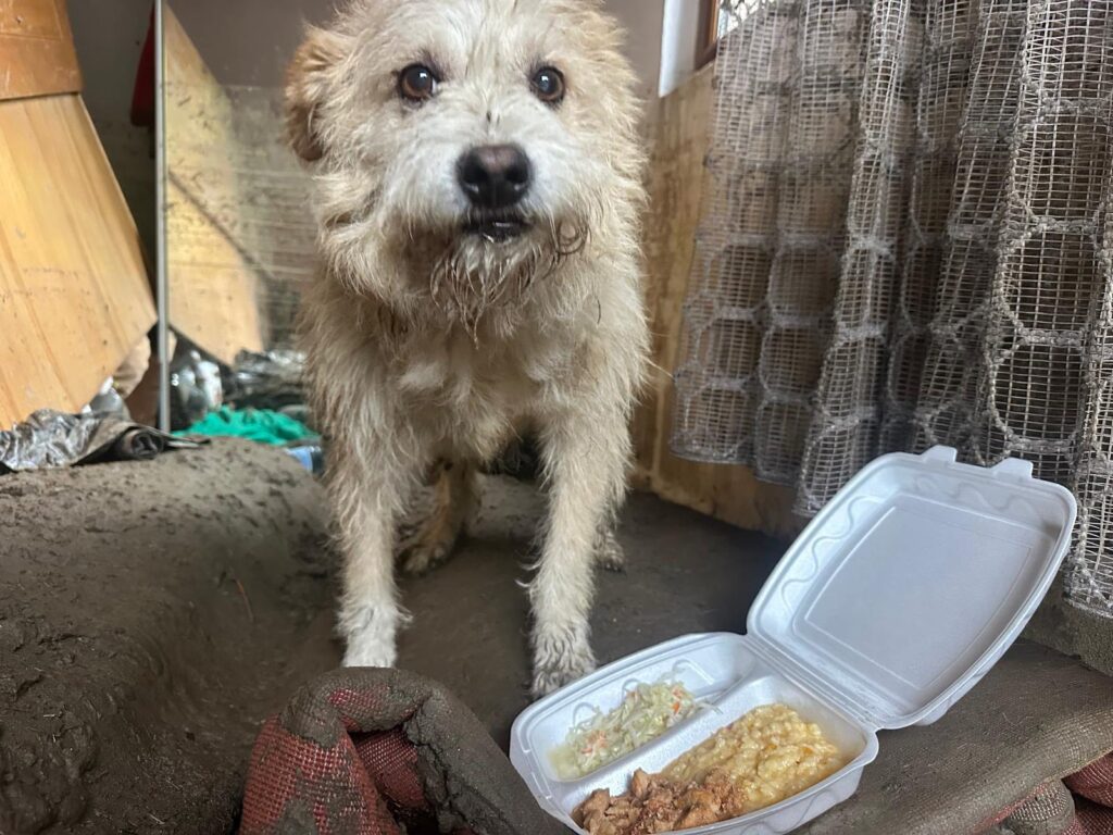 I-am luat şi căsuță, ca să aibă şi el căsuța lui. I-am luat mâncare. I-am luat pături şi castroane, de toate. I-am dus şi bidoane cu apă.