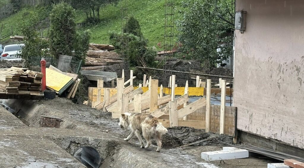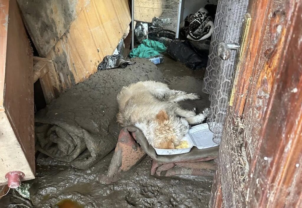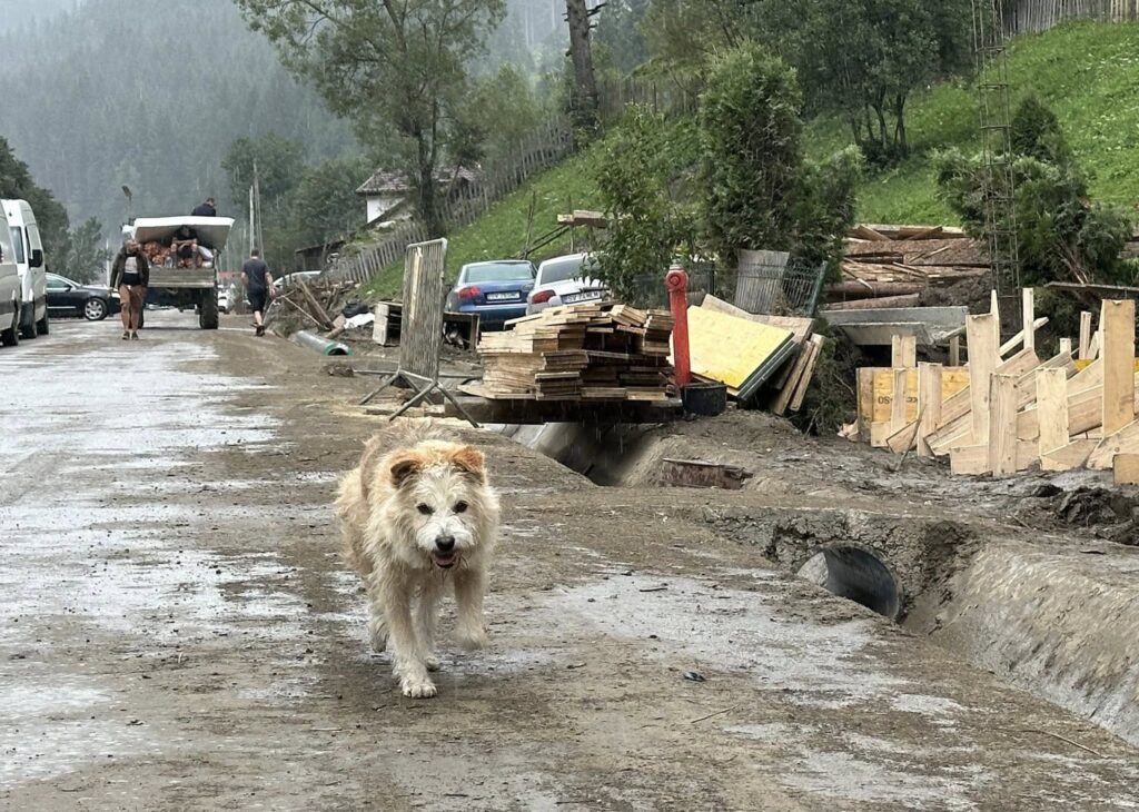 L-am întâlnit luni, a doua zi după potop, când ne-am dus încolo cu Poliția Animalelor. Când apele încă mai curgeau prin case, când pompierii, jandarmii şi salvamontul încă mai scoteau animale cu mâinile goale şi în cupele utilajelor. Oamenii erau deja salvați, recuperați, evacuați.