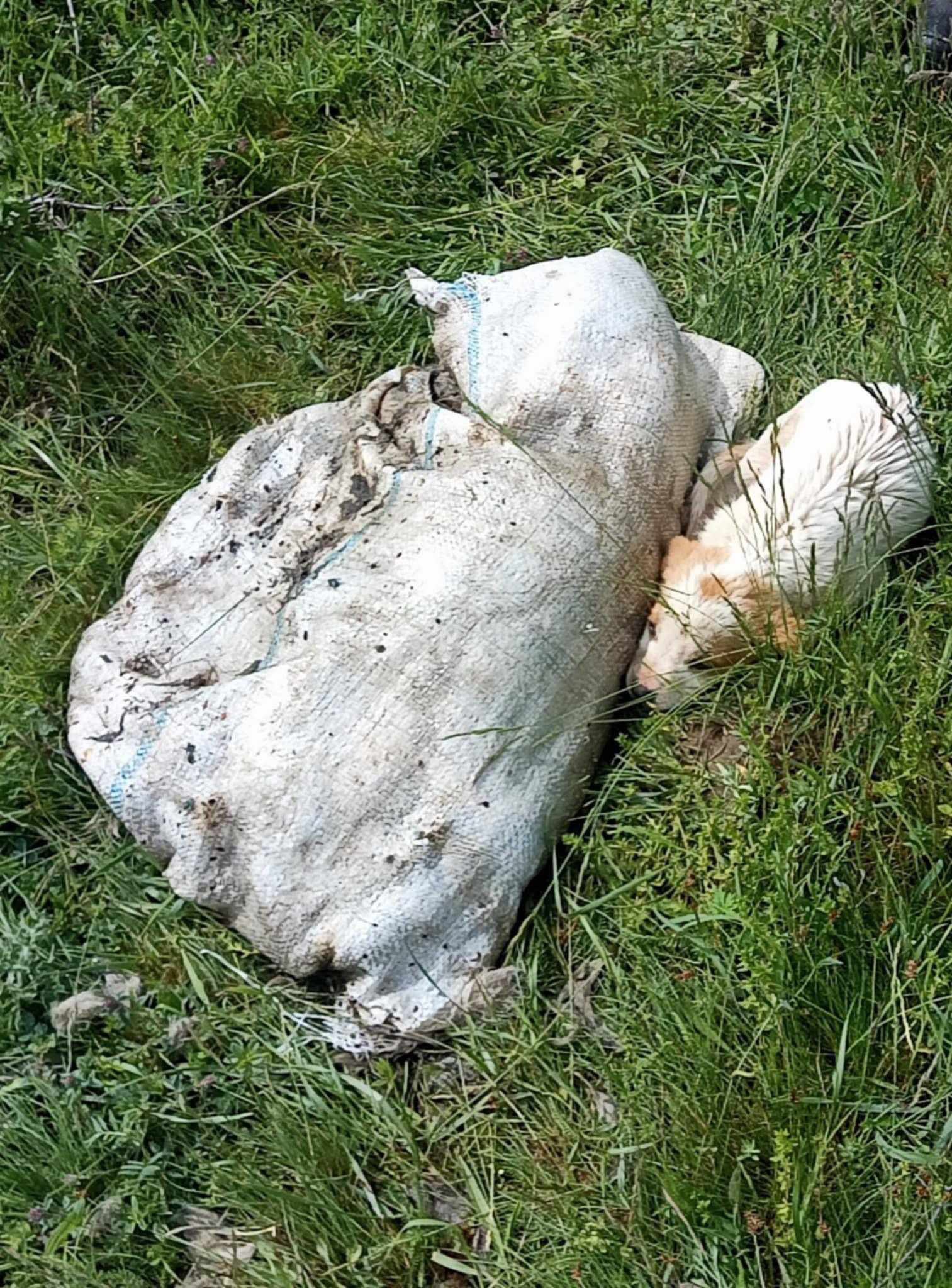 În sacul legat la gură, o mamă câine. Moartă de ceva timp, după mirosul greu. Lipit de sac, al său