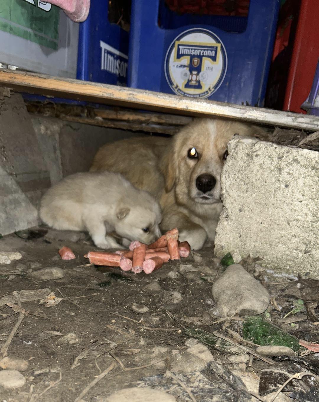 .Patru puiuți de cățel au fost aruncați acolo, alături de un sac de rafie. Unul a murit așteptând salvarea. Trei