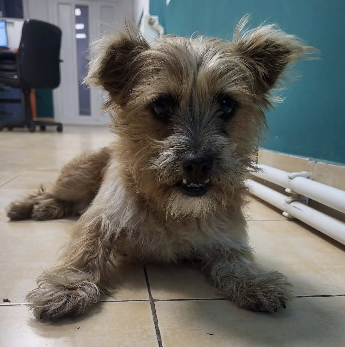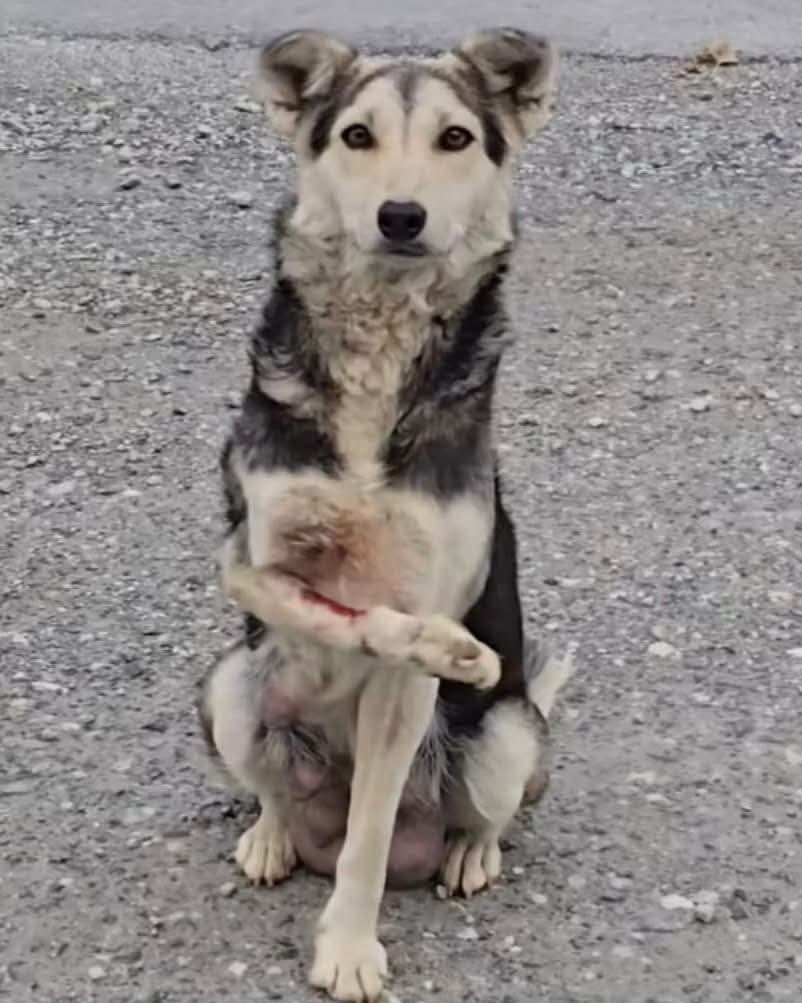 Mavi a fost găsit abandonat într-un câmp. Ținea un picior suspendat, blana îi lipsea pe alocuri, iar la gât avea