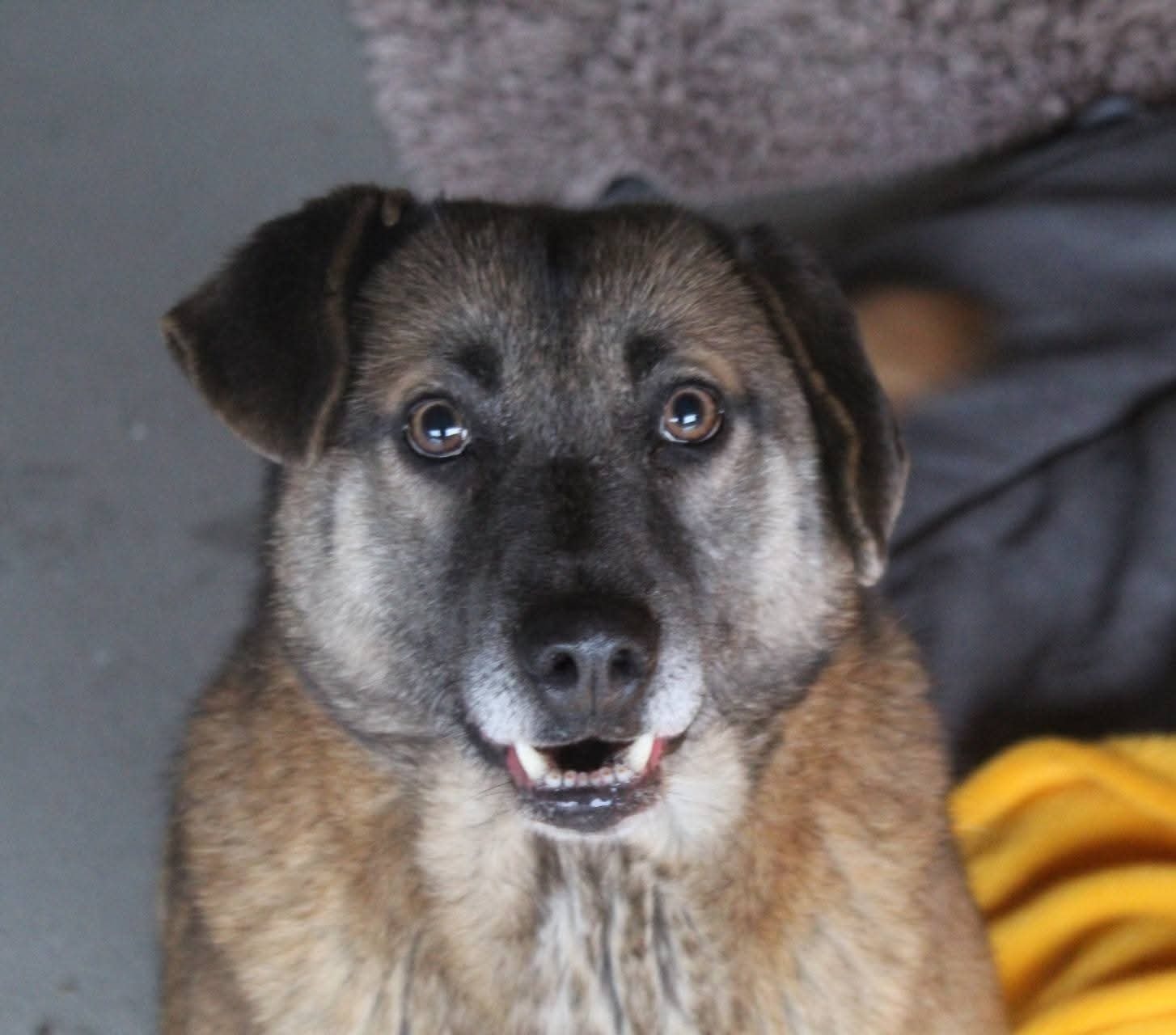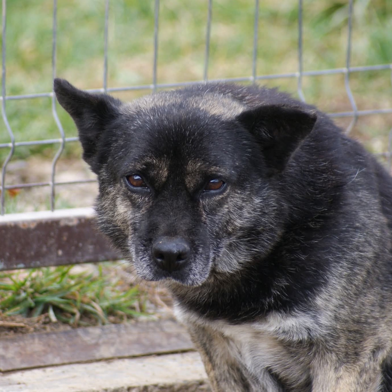 Stă într-un colț de adăpost și-și așteaptă rândul la adopție, fără să deranjeze, cu privirea aceea caldă care nu cere