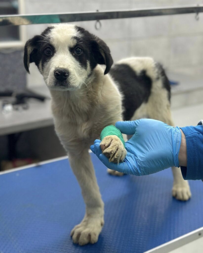 Medicul i-a pus atelă. Vitamine, mâncare bună, recuperare şi Doamne Ajută. Cum o să calce înapoi pe 4 picioare, o să-i trebuiască şi o familie. Ca să nu-şi trăiască copilăria în dosul gratiilor.