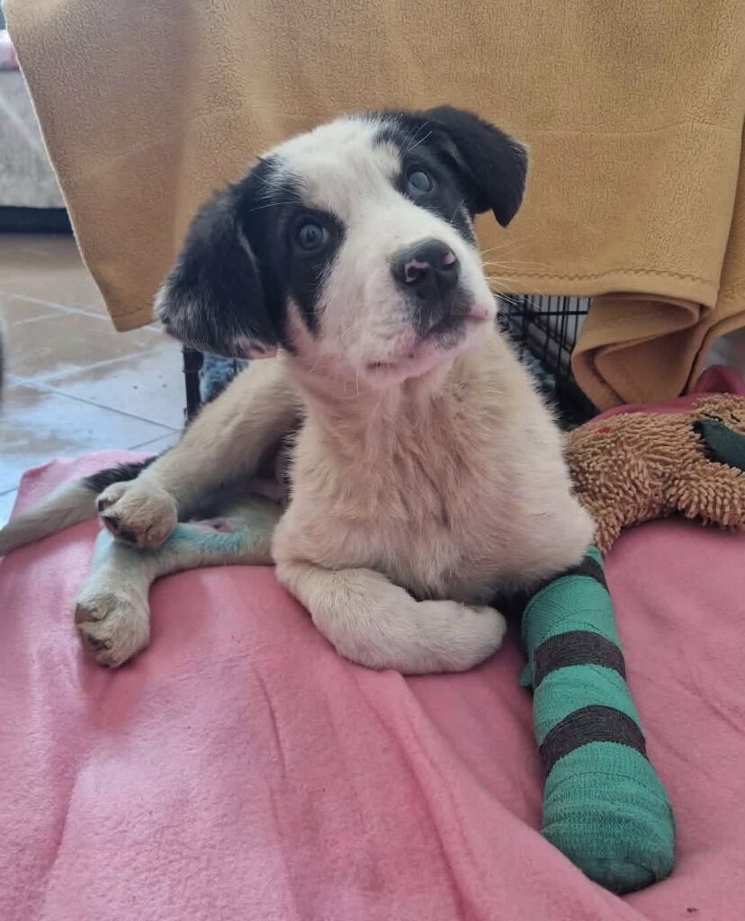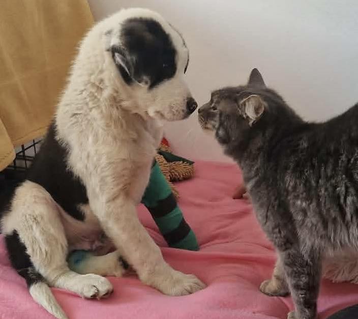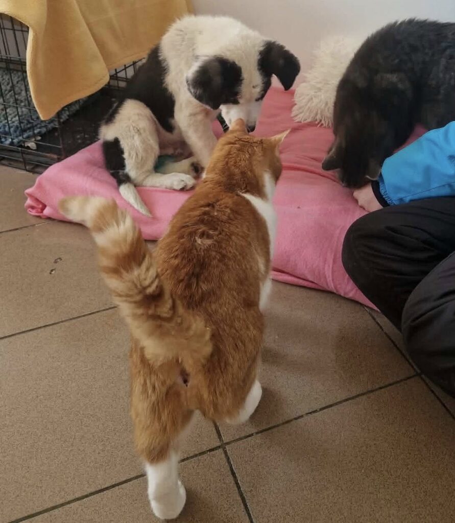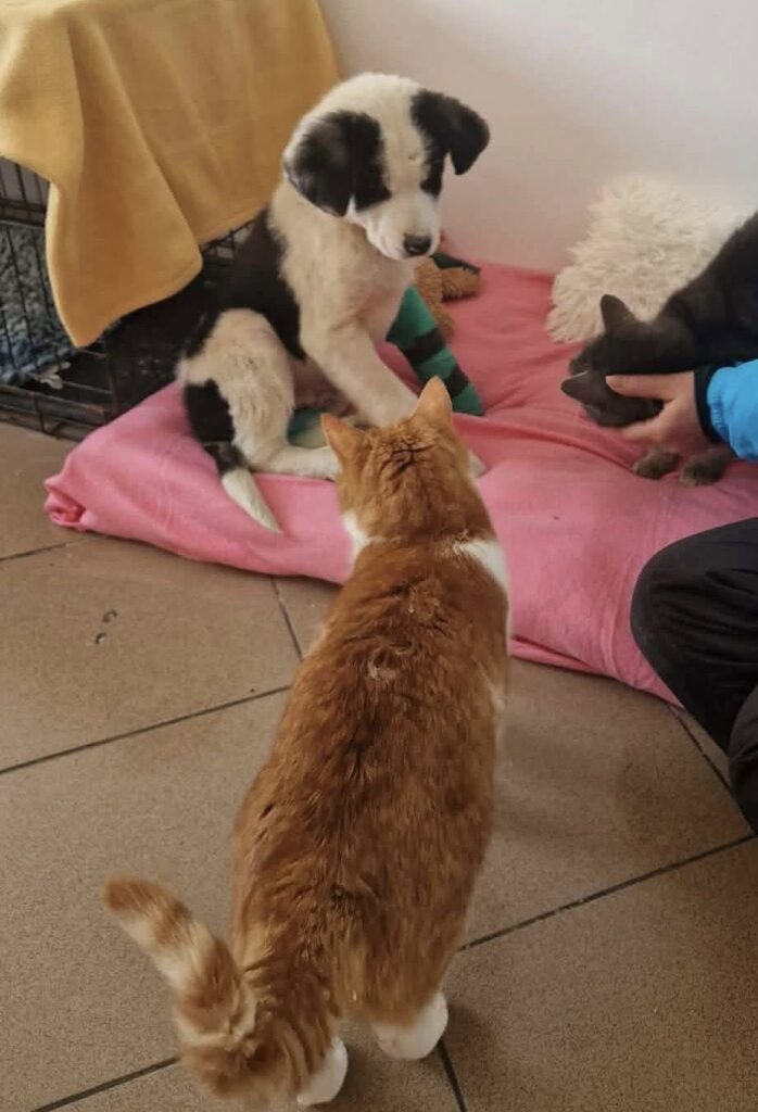 Ăsta mic? L-am îngrămădit pe unde am mai găsit un loc la bine şi la cald. Lângă pisici. Pe lângă sobă şi radiator. Că-i mic şi-l doare un picior. Are ghips, are rahitism şi are noroc că urlă cât îl ține gura dacă stă singur. Că-n felul ăsta, şi-a făcut prieteni din altă specie.